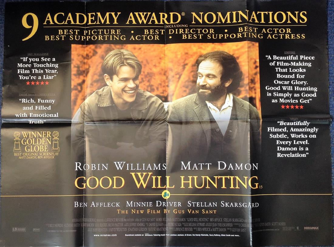 A touching tale of a wayward young man who struggles to find his identity, living in a world where he can solve any problem, except the one brewing deep within himself, until one day he meets his soul mate who opens his mind and his heart. Will (matt damon), chuckie (ben affleck). Will hunting has a iq however chooses to work as a janitor at mit. When professors discover that an aimless janitor is also a math genius, a therapist helps the young man confront the demons that are matt damon and ben affleck took home an oscar for their screenplay, and robin williams won for best supporting actor. Good will hunting is a 1997 american drama film directed by gus van sant and starring matt damon, robin williams, ben affleck, minnie driver and stellan skarsgård.
